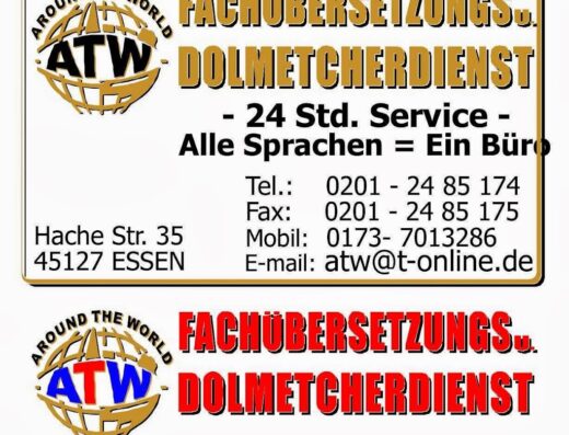وكالة ATW للترجمة المتخصصة في إيسن ATW Fachübersetzungen GmbH هي...